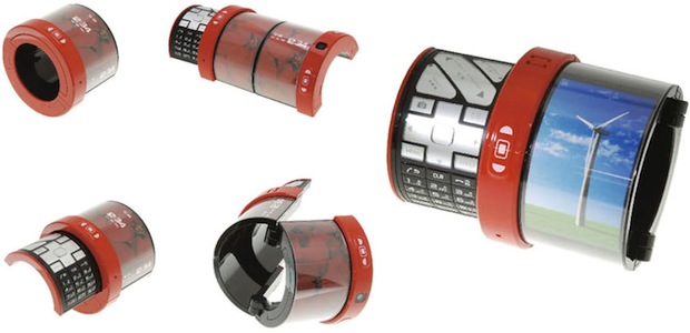 Description: A paper-thin handset that can be folded into a compact shape and unfolded for use as a phone.